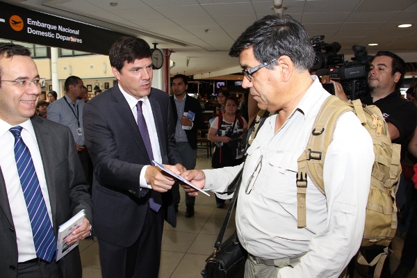 En plena temporada estival, y a pocos días que miles de personas comiencen a embarcar hacia los distintos destinos de vacaciones, el Ministro de Transportes y Telecomunicaciones, Andrés Gómez-Lobo, junto al titular de Economía, Luis Felipe Céspedes, entregaron recomendaciones a los usuarios acerca de sus derechos y deberes como pasajero aéreo e hicieron una demostración de la aplicación “Pasajero Aéreo”.